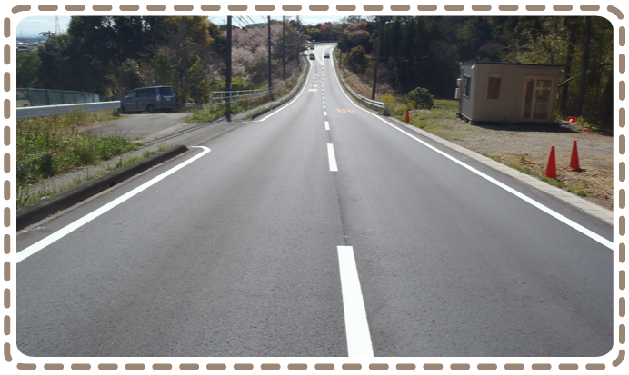 | 工事概要 | 路面切削A=3,330㎡ 表層工A=3,330㎡ 区画線工L=1,165m |