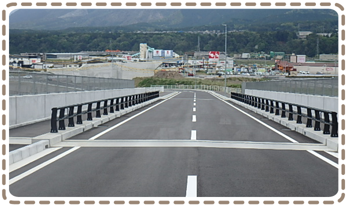 | 工事概要 | 舗装工A=1,570㎡ 鏡面舗装工A=359㎡ 区画線工L=620㎡ 転落防止柵工L=286m |