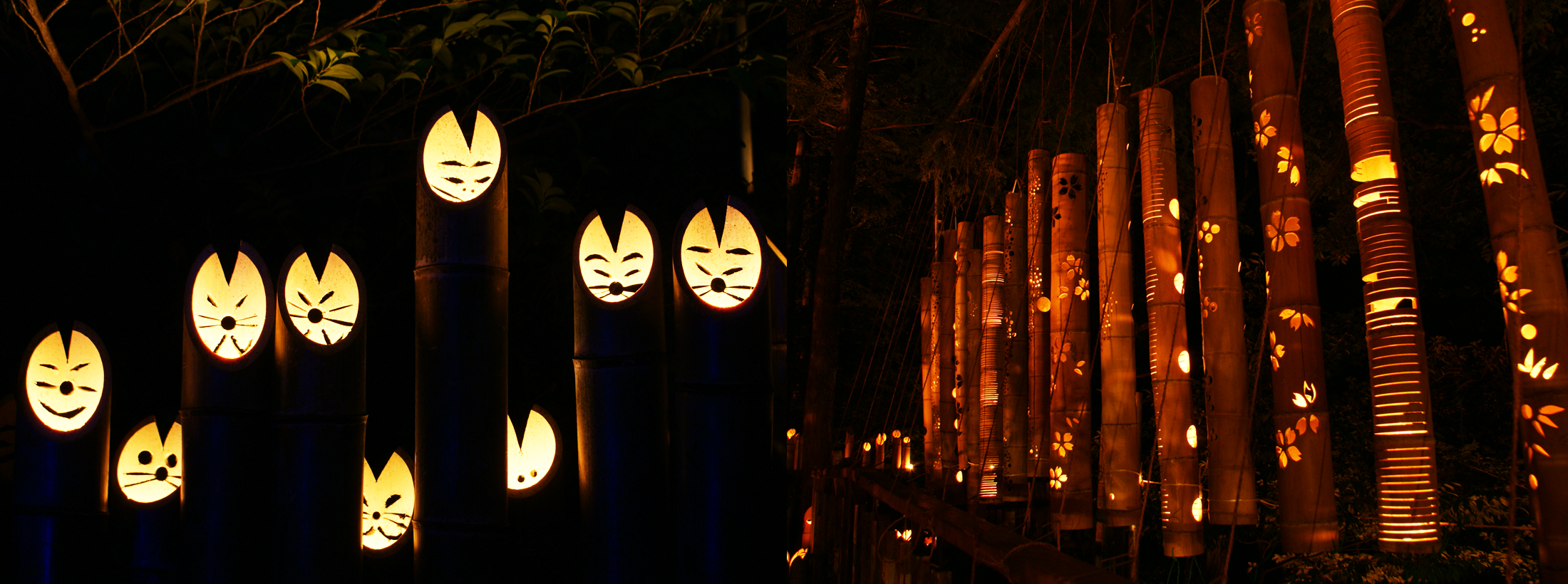 2万本の竹灯りと水辺が織りなす幻想的な風景、暖かい光があなたを心のふるさとへ誘います。