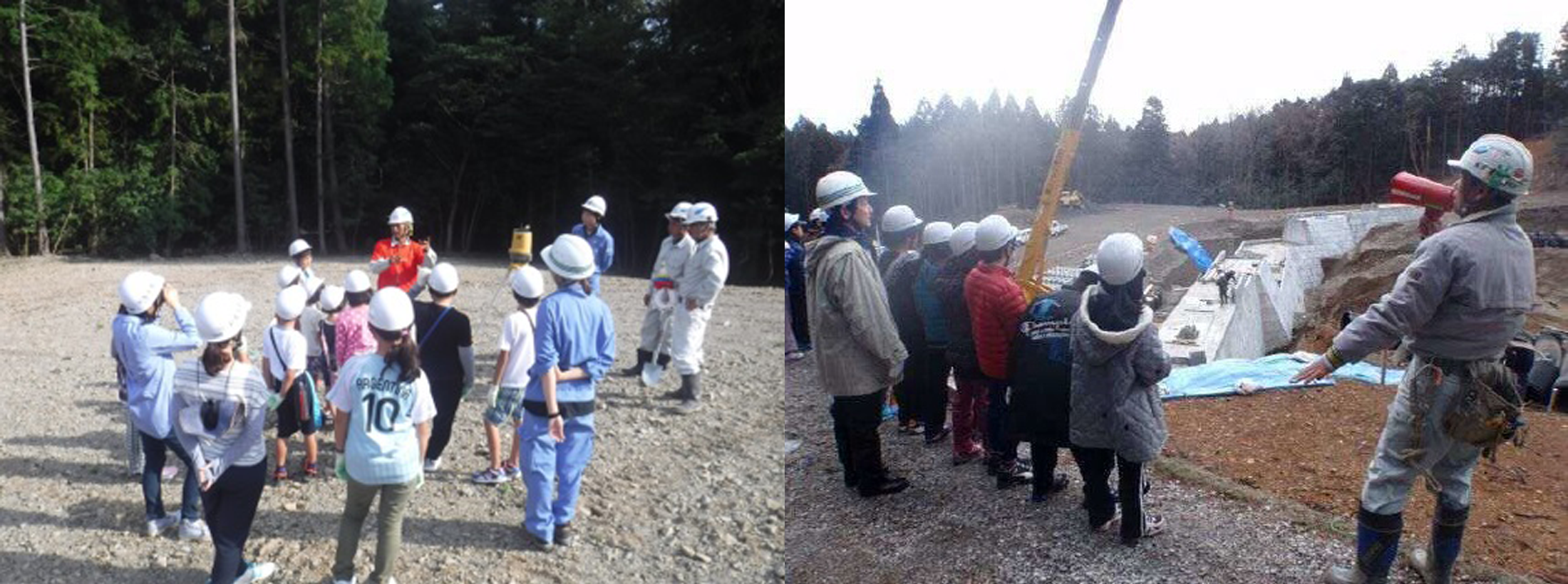 桑名建設事務所は総合学習の一環として、地元の小学生を対象にした現場見学会行っています。近年多発する災害に備え、土砂災害の危険性や防災設備の果たす役割を知ってもらうため、建設業協会桑員支部と施工業者と協力して毎年行っています。弊社も砂防工事現場にて作業体験をしてもらいました。